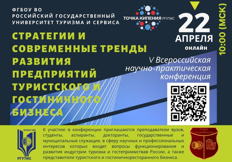 22 апреля 2022 состоится V Всероссийская научно-практическая конференция «Стратегии и современные тренды развития предприятий туристского и гостиничного бизнеса».